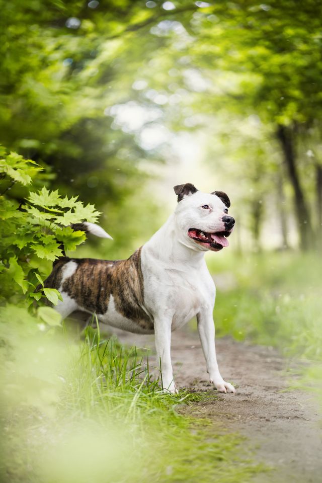 Buli – amstaff, który udaje groźnego, ale w środku jest mięciutki jak pluszowy miś! Spójrzcie tylko na tego „groźnego” pyszczka! Buli może i wygląda na twardziela, ale wystarczy jedno spojrzenie w jego piękne, brązowe oczy i od razu wiadomo, że to najłagodniejszy pies na świecie.