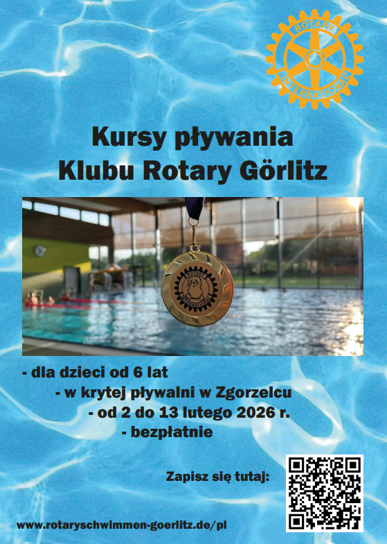 Od 2 do 13 lutego 2026 r. Rotary Klub Goerlitz oferuje bezpłatne kursy pływania dla dzieci w wieku od lat 6, na pływalni w Zgorzelcu.