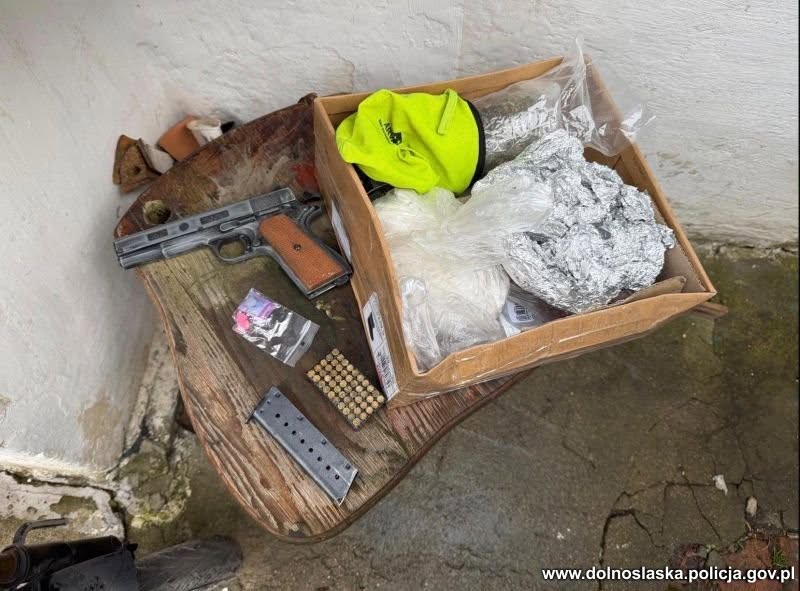 Mężczyzna został zatrzymany i trafił do Komisariatu Policji w Bogatyni. W wyniku przeszukania jego mieszkania oraz pomieszczeń gospodarczych policjanci ujawnili dwie jednostki broni, amunicję oraz kolejne narkotyki. Łącznie policjanci zabezpieczyli ponad 260 gramów metamfetaminy, 141 gramów marihuany i sproszkowane tabletki ekstazy.