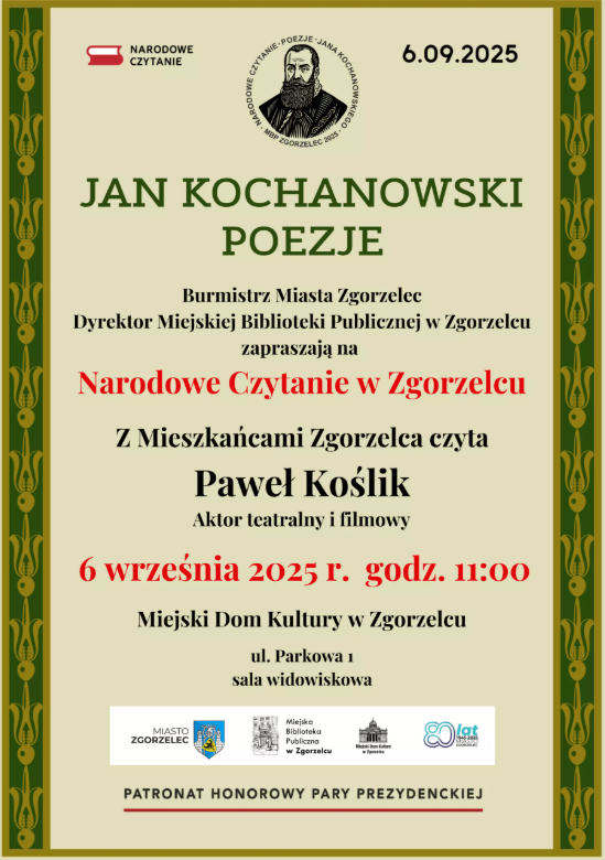 Narodowe Czytanie 2025 – poezja Jana Kochanowskiego w Zgorzelcu