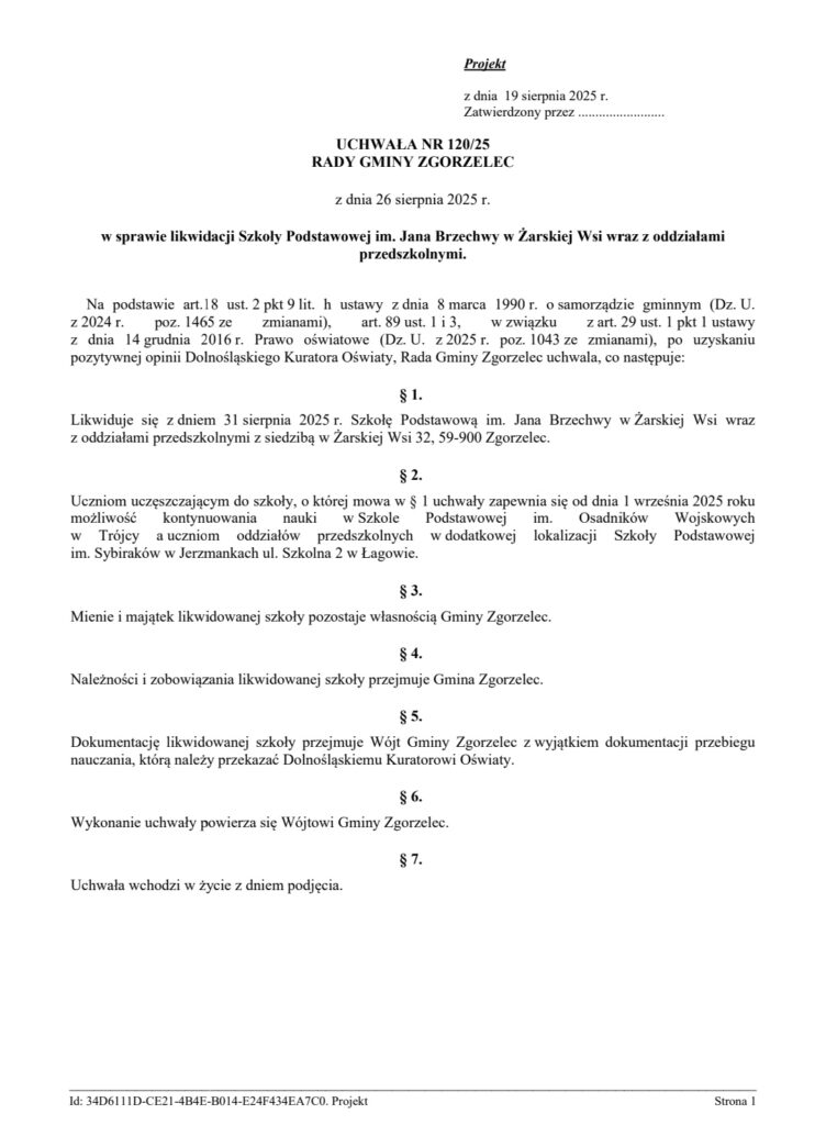 Tagi: Gmina Zgorzeleclikwidacja szkoły podstawowej w żarskiej wsiprojekt uchwałyuchwaławójt gminy zgorzelecwójt pioyt machajzamknięcie przedszkolazamknięcie szkołyżarska wieś
