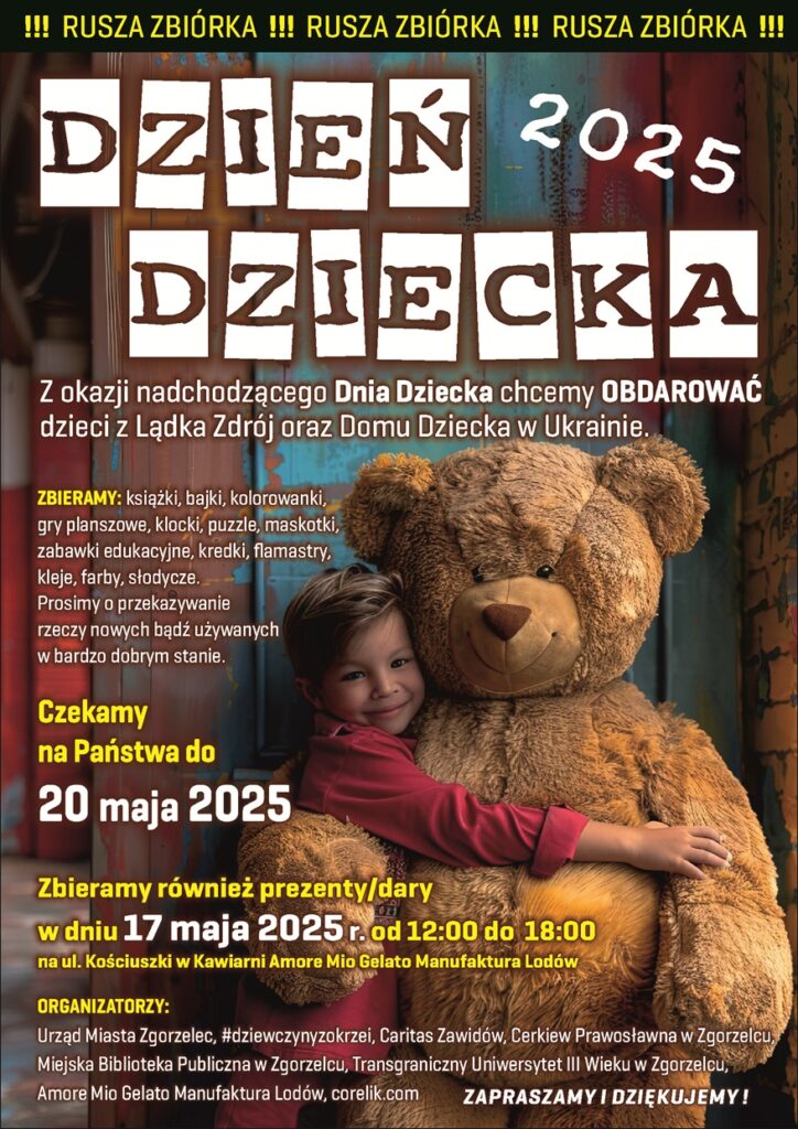 „Z okazji nadchodzącego Dnia Dziecka chcemy sprawić trochę radości dzieciom z Lądka Zdroju, gdzie wciąż jeszcze widoczne i odczuwalne są skutki katastrofalnej jesiennej powodzi oraz dzieciom z Domu Dziecka w Ukrainie, który wybierzemy w porozumieniu z Danielem Lewakowskim, bo to on pojedzie z tym transportem. Chcemy dać odrobinę radości dzieciom, których codzienność daleka jest od beztroski” – mówi Dorota Tyniec, jedna z wolontariuszek, które od początku wojny na Ukrainie, jako #dziewczynyzokrzei organizują pomoc dla potrzebujących z terenów objętych działaniami wojennymi oraz różne akcje społeczne, w tym pomoc dla powodzian z Dolnego Śląska. Współpracuje z nimi Urząd Miasta w Zgorzelcu, Miejski Dom Kultury, zgorzelecki CSR, miejskie i przedszkola oraz zgorzeleccy przedsiębiorcy i różne organizacje. Dzięki współpracy z Danielem Lewakowskim z Mrągowa, który od początku rosyjskiej inwazji jeździ z pomocą do małych miejscowości w trudno dostępnych rejonach Ukrainy, transporty z pomocą od mieszkańców Zgorzelca, Gӧrlitz i okolicznych miejscowości docierają do potrzebujących.
