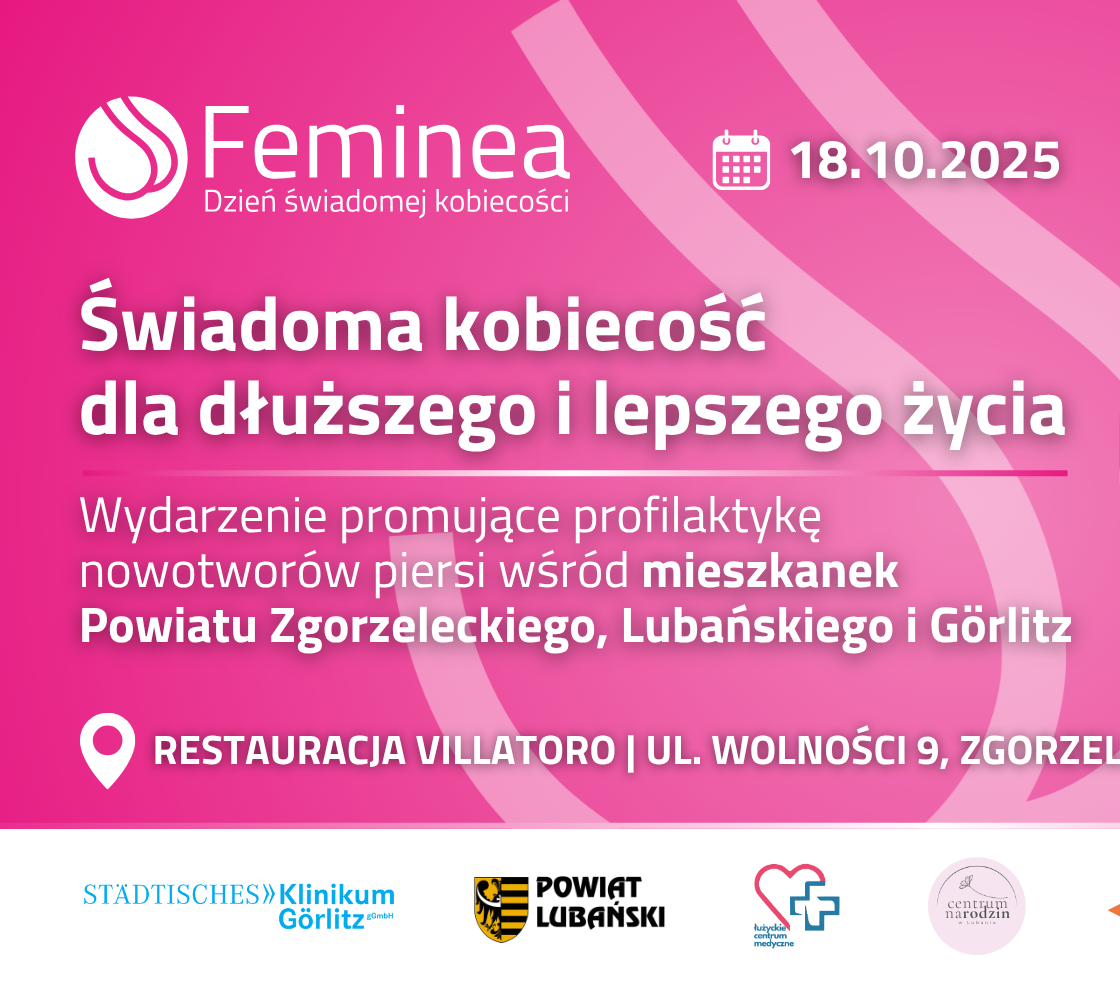 Rak piersi to najczęściej diagnozowany nowotwór u kobiet. Wczesne wykrycie daje ponad 90% szans na przeżycie pięciu lat po diagnozie (KRN, WHO). 18 października w Zgorzelcu odbędzie się wydarzenie Feminea – dzień poświęcony profilaktyce, leczeniu i wsparciu kobiet dotkniętych chorobą. W programie: prelekcje, warsztaty samobadania, konsultacje i rozmowy o zdrowiu psychicznym.