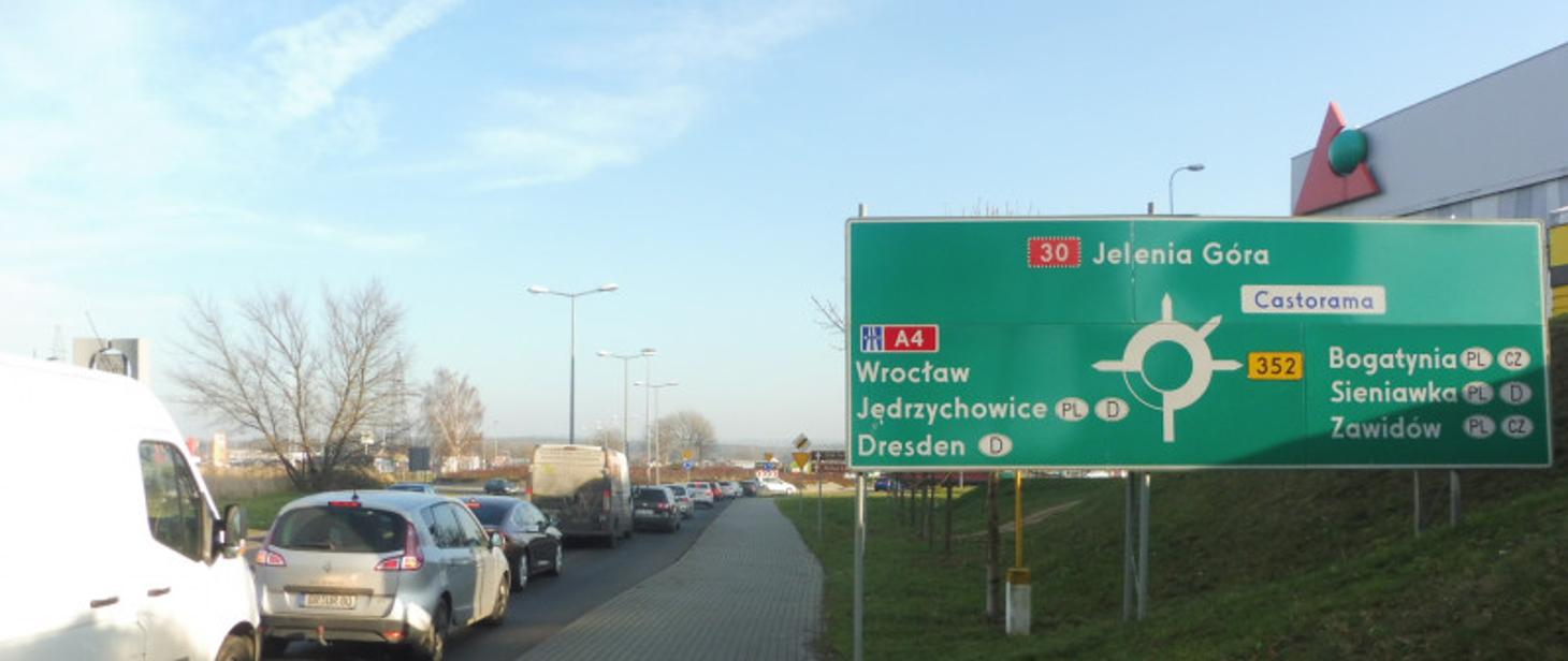 - drogę krajową nr 30 (kierunek Lubań/Jelenia Góra, autostrada A4),
