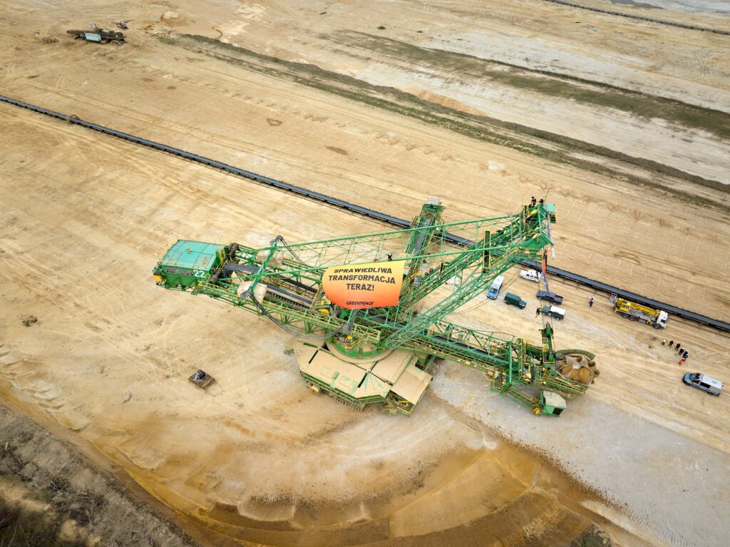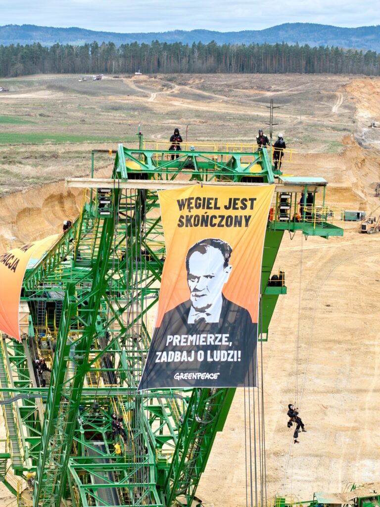 Aktywistki i aktywiści Greenpeace od wczesnych godzin porannych okupują jedno z gigantycznych urządzeń służących do wydobycia węgla brunatnego w kopalni odkrywkowej Turów. Swoją pokojową akcją domagają się od Donalda Tuska jednoznacznej deklaracji o zakończeniu pracy odkrywki i elektrowni w ciągu najbliższych lat. Wyznaczeniu daty zamknięcia Turowa musi towarzyszyć plan transformacji regionu, pozwalający uzyskać środki na jego realizację. Bez działań rządu region czeka zapaść i bezrobocie.