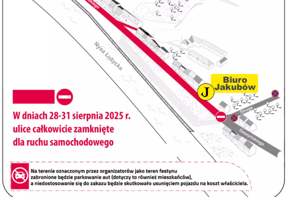 Podczas nadchodzącego wydarzenia „Jakuby – Święto Starego Miasta” wprowadzone zostaną zmiany w organizacji ruchu drogowego. W rejonie Przedmieścia Nyskiego na części miejskich ulic będzie obowiązywał całkowity zakaz ruchu samochodowego – tak jak co roku podczas tej imprezy.