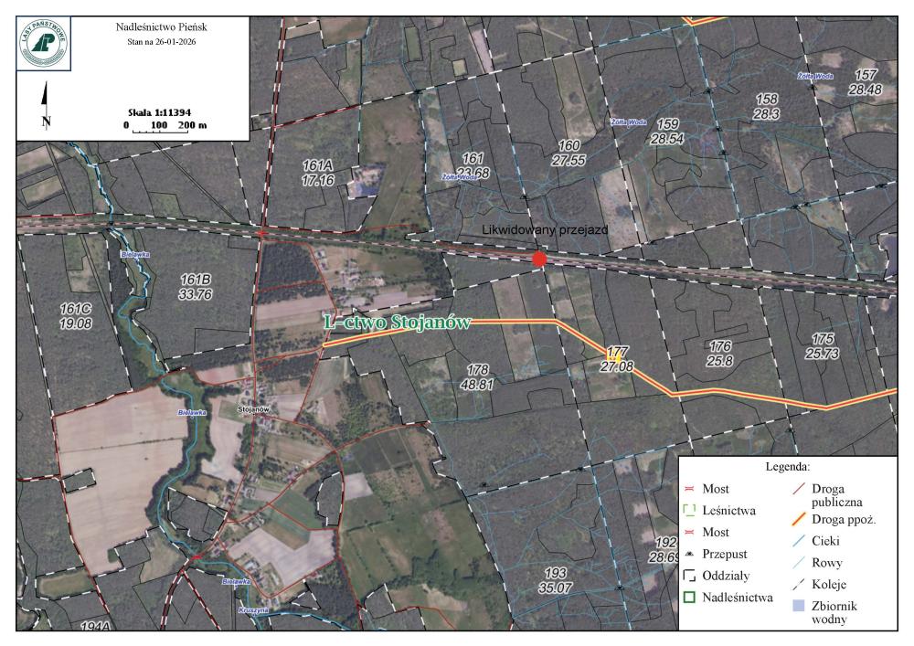 Nadleśnictwo Pieńsk informuje o  likwidacji przejazdów kolejowo – drogowych zlokalizowanych na linii kolejowej nr 295 relacji Węgliniec – Bielawa Dolna, położonych na drogach wewnętrznych Nadleśnictwa Pieńsk w pobliżu miejscowości Zielonka  (6,671 km; 51.287564, 15.128892) oraz miejscowości Stojanów (10,609 km; 51.286730, 15.072701).