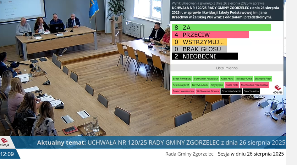 Wójt Piotr Machaj: Spotykamy się po wielu miesiącah rozmów, dyskusji, sporów, aby podjąć uchwałę, która jest dla wszystkich trudna. Na pewno jest bolesna dla mieszkańców, rodziców, ale też trudna dla mnie i dla radnych, którzy podjęli inicjatywę, podjęliśmy wspólnie, o likwidacji szkoły w Żarskiej Wsi. Pewnych rzeczy, czyli demografii, spadku urodzeń nie zmienimy. Dzisiaj mamy też trudną sytuację tegoroczną, jeżeli chodzi o urodzenia i myślę, że to się będzie pogłębiało. Podejmujemy tę uchwałę dość późno, ale to nie nasza jakby rola, czy wina, że procesyy decyzyjne przebiagają długo, trwają długo. My musimy się do tego przystosować.