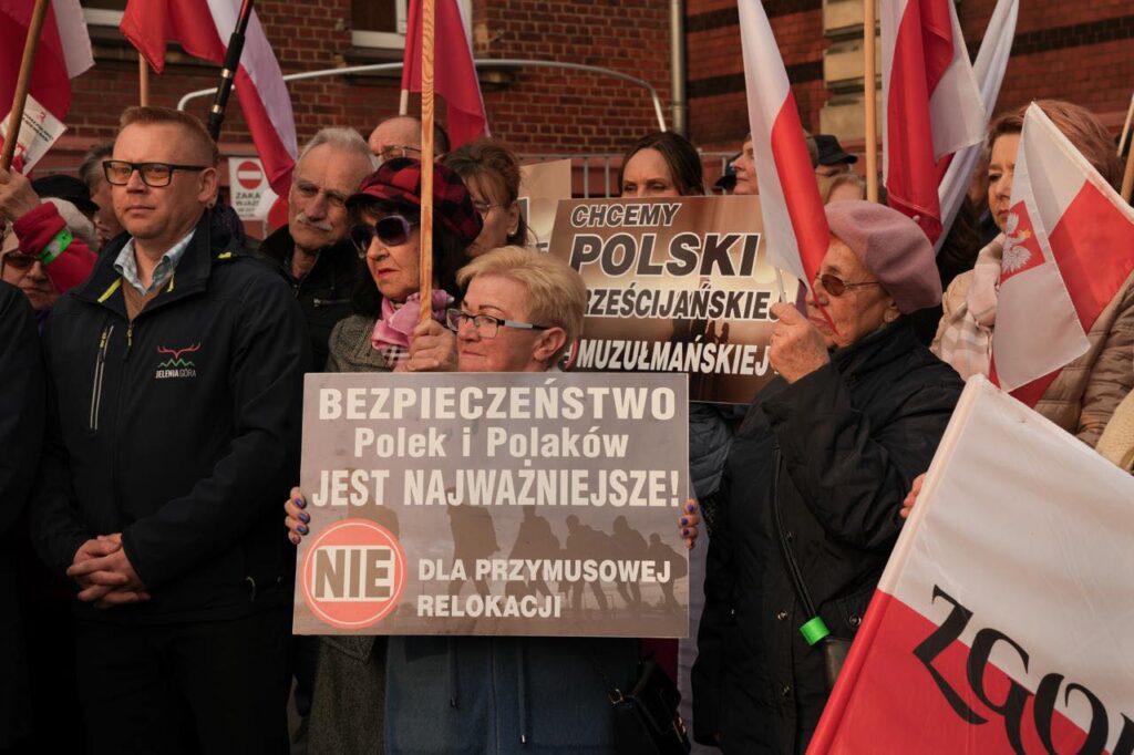 „Pilnujemy tutaj w Zgorzelcu razem z mieszkańcami, żeby Polska nie stała się krajem migracyjnego chaosu. Chcemy, żeby nasze siostry, matki, nasze córki spokojnie mogły chodzić po ulicach polskich miast. Tak było do tej pory. Polska była jednym z najbezpieczniejszych krajów w Europie. Dzisiaj to się może zmienić. Powiedzmy razem głośno: NIE dla nielegalnej emigracji!”