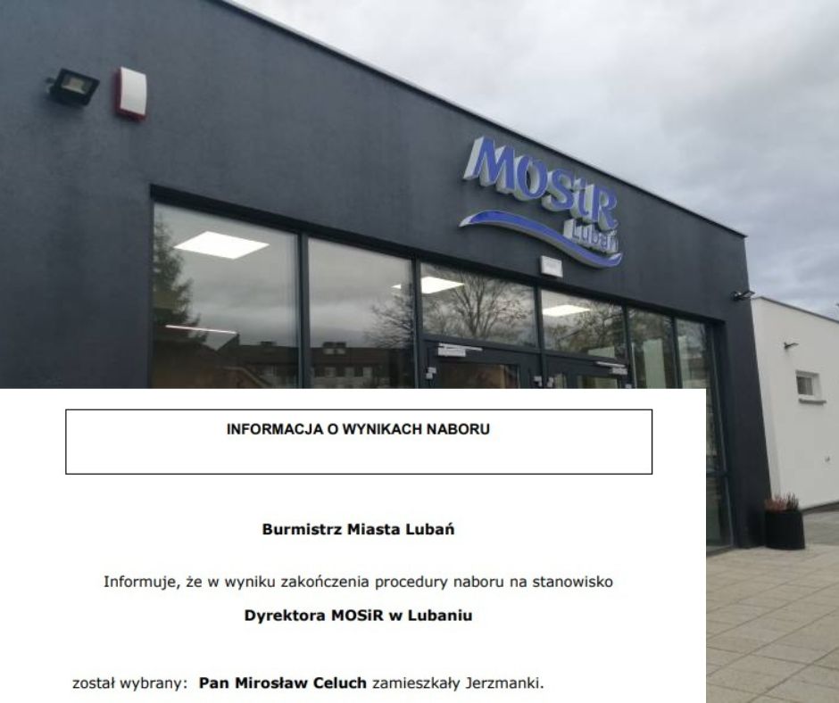 Wczoraj opublikowano informację o wynikach naboru na stanowisko Dyrektora Miejskiego Ośrodka Sportu i Rekreacji w Lubaniu – został nim właśnie Mirosław Celuch. W wyborach samorządowych 2024 startował do Rady Powiatu Zgorzeleckiego z listy Koalicji Obywatelskiej, jednak nie uzyskał mandatu.