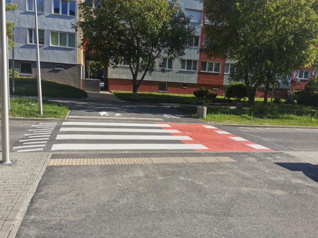 Dodatkowo na ul. Norwida pomalowano wyniesione przejścia dla pieszych i ścieżkę pieszo-rowerową.