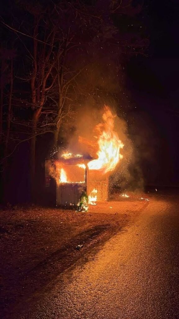 „W nocy doszło do podpalenia przystanku autobusowego w miejscowości Czerwona Woda. Na miejsce niezwłocznie zadysponowano jednostkę straży pożarnej, która szybko ugasiła ogień i zabezpieczyła teren.