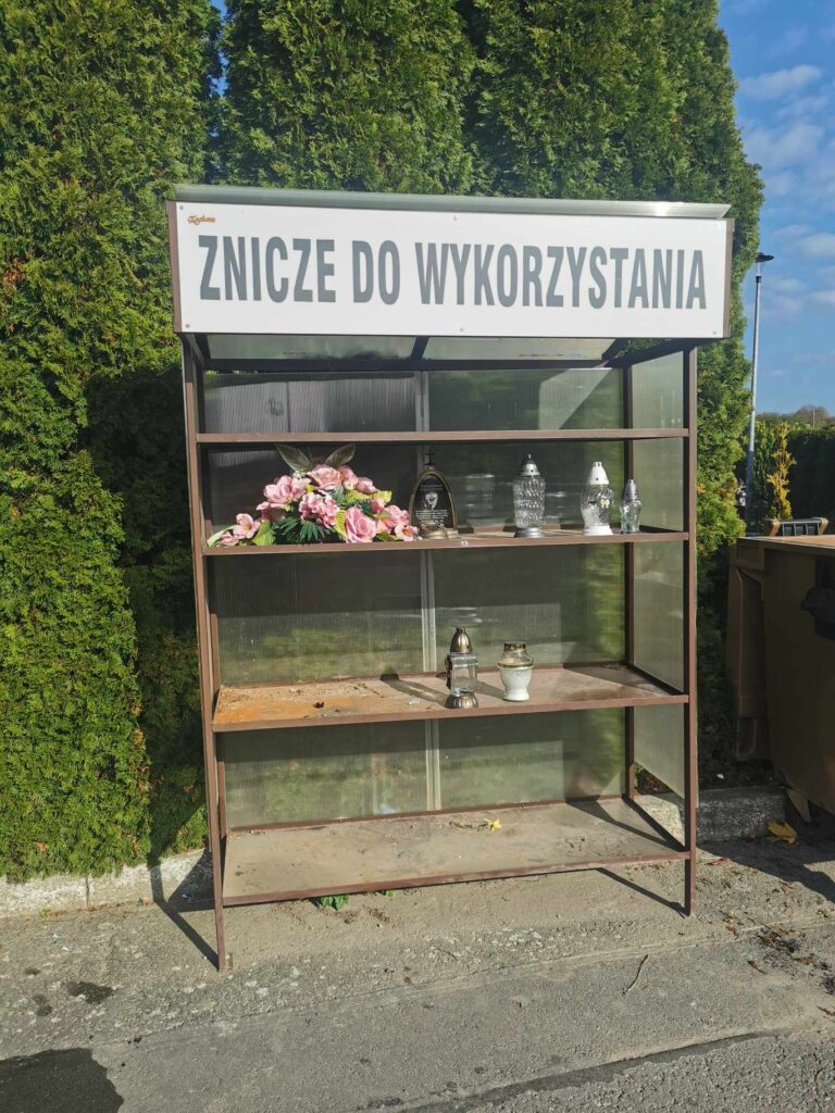 Zniczodzielnie to opisane regały znajdujące się na cmentarzach. Możemy postawić tam nowe lub zużyte znicze, które nie są zniszczone i wystarczy jedynie wymienić wkład. To również miejsce na nowe wkłady, wiązanki czy wieńce, którymi chcielibyśmy się podzielić. Dzięki temu możemy pomóc tym, dla których jest to jednak spory wydatek. Po drugie taka postawa pomaga chronić środowisko, zmniejszając ilość odpadów – zamiast wyrzucić dobry znicz, puszczamy go dalej w obieg, dając drugie życie.