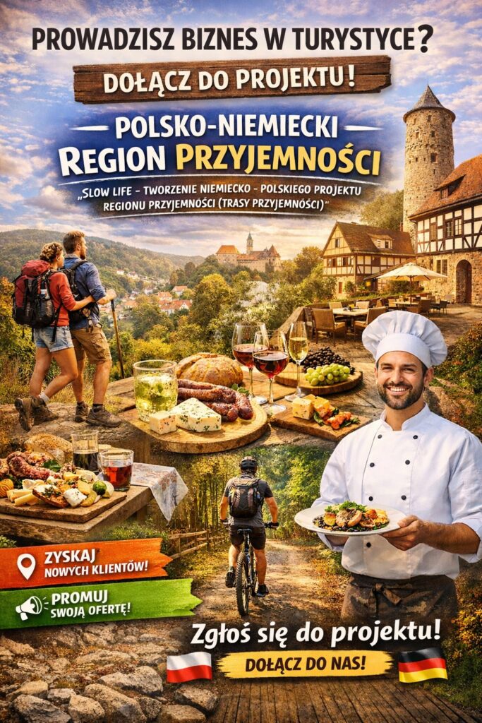 Powstaje Polsko-Niemiecki Region Przyjemności w ramach projektu „Slow Life – trasy przyjemności”. Szukamy miejsc i firm, które chcą współtworzyć wyjątkową ofertę turystyczno-rekreacyjną, gastronomiczną i noclegową naszego regionu.