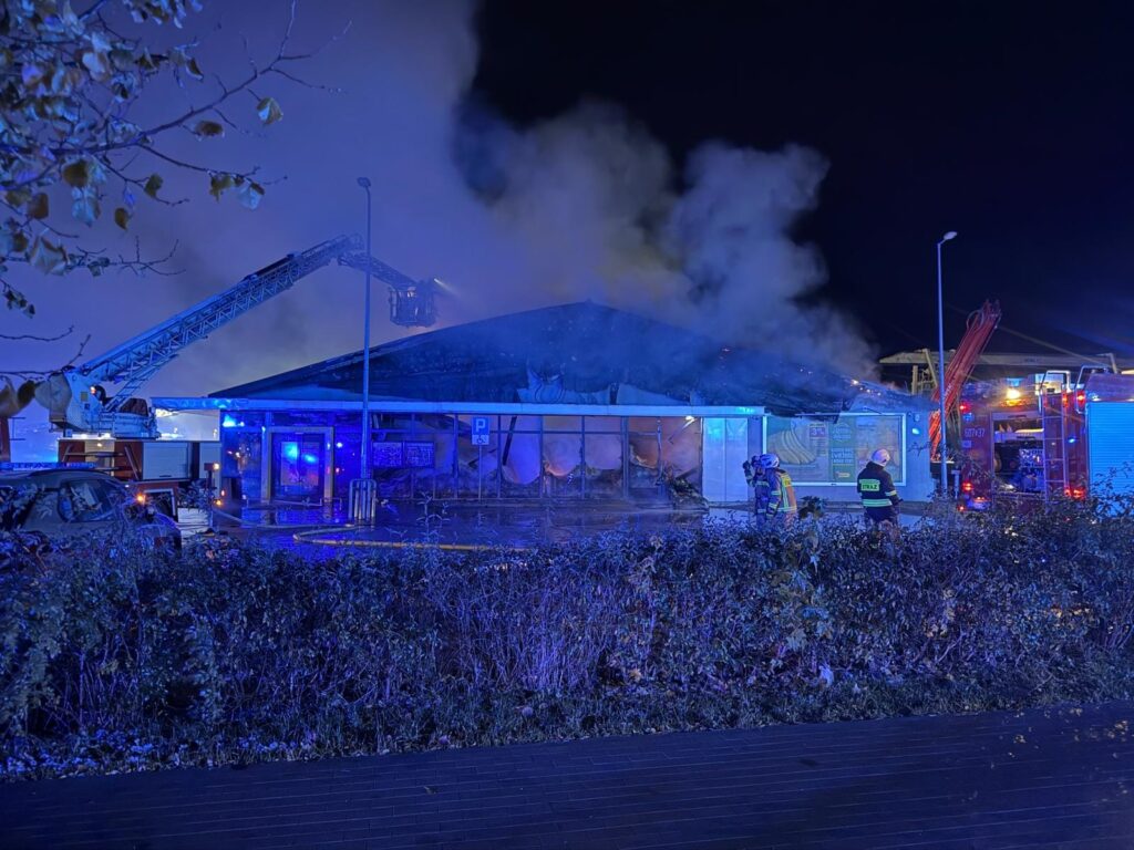 Dziś w nocy około godziny 1:00 doszło do pożaru sklepu Biedronka w Zawidowie, przy ul. Mikołaja Kopernika. Ogień bardzo szybko rozwinął się i objął sporą część marketu, miał nawet zawalić się dach.