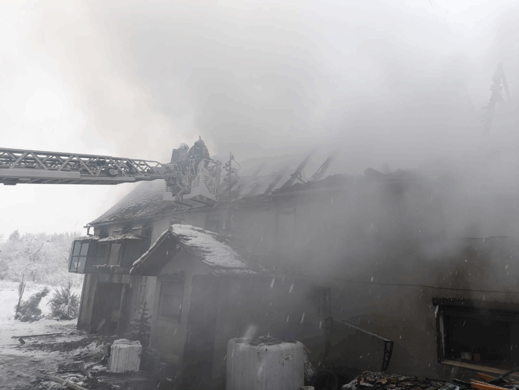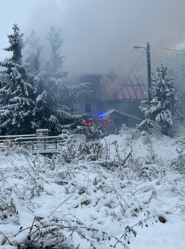 W dniu 26.11.2025r. o godz. 7.20 w miejscowości Bierna doszło do pożaru budynku mieszkalnego jednorodzinnego, w którym zamieszkiwały 3 osoby. Po dojeździe pierwszych zastępów ogień już obejmował połowę dachu budynku i bardzo szybko rozprzestrzenił się na większą cześć obiektu. Żaden z mieszkańców nie odniósł obrażeń, jednak w trakcie prowadzonych działań ratowniczo-gaśniczych wypadkowi uległ jeden ze strażaków.
