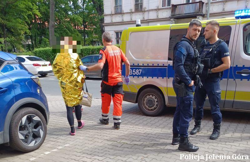 Kobieta została przewieziona przez ZRM do Szpitala w Jeleniej Górze, w celu udzielenia jej pomocy medycznej.