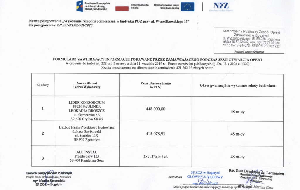 Remont POZ przy Wyczółkowskiego w Bogatyni – 3 oferty w przetargu