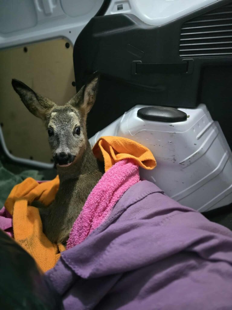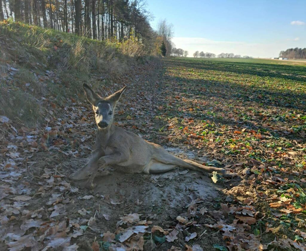 Ranną młodą sarnę znaleziono we wtorek (18 listopada). Nie mogła się przemieszczać, było widać problem z poruszaniem tylnymi kończynami. Mężczyzna, który znalazł zwierzę zareagował natychmiast, zostawił wodę do picia, następnie powiadomiono służby i urzędy. Niestety, nastepnego dnia zwierzę wciąż leżało ranne, w tym samym miejscu. Pomoc zorganizowało dopiero okoliczne schronisko.