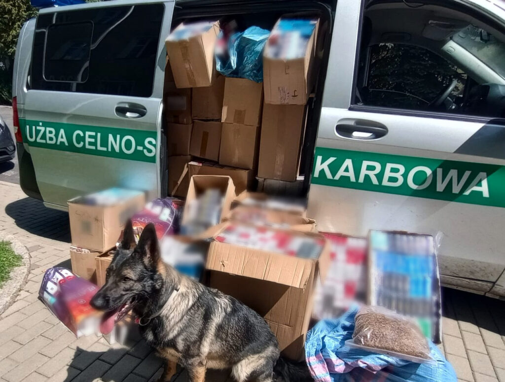 Funkcjonariusze Służby Celno-Skarbowej z Dolnośląskiego Urzędu Celno-Skarbowego we Wrocławiu przeprowadzili kontrole na targowisku w Sieniawce.  Podczas działań funkcjonariusze znaleźli ponad 15 kg tytoniu oraz 257 tys. szt. papierosów bez polskich znaków akcyzy. Funkcjonariuszy wspomagał pies służbowy Ina.