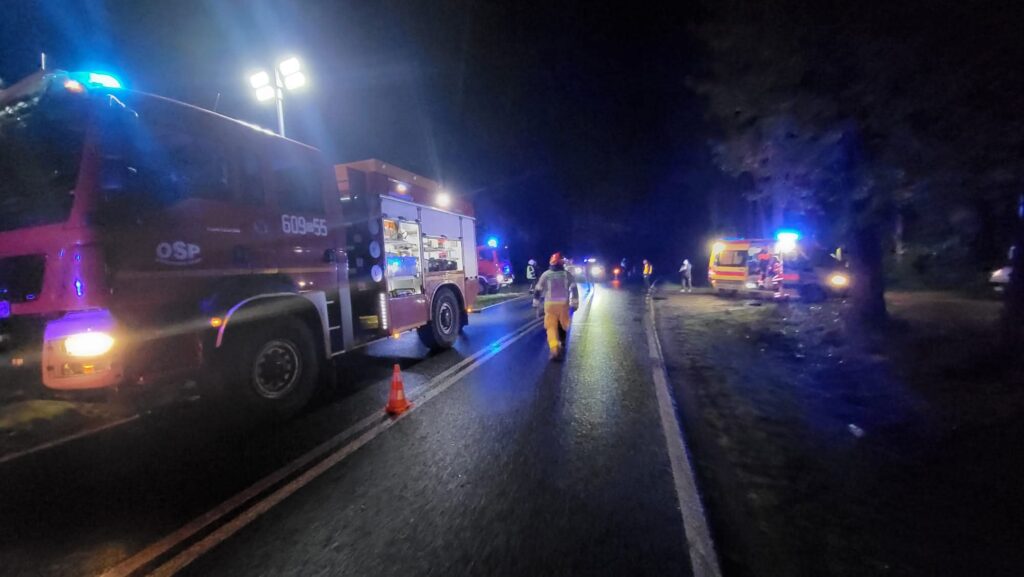 Na miejscu pracują służby ratunkowe i policja. Droga pozostaje całkowicie zablokowana do czasu zakończenia czynności operacyjnych i zabezpieczenia terenu.