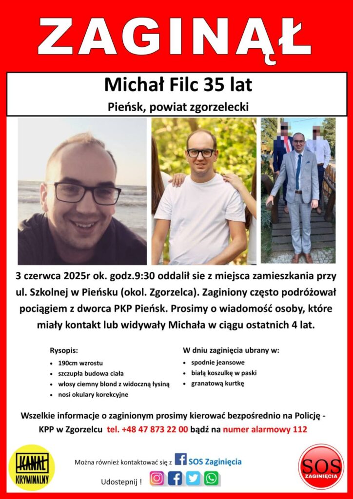 35-letni Michał Filc, mieszkaniec Pieńska, zaginął 3 czerwca i do dziś nie ma z nim kontaktu. Pomimo organizowanych poszukiwań nie udało się odnaleźć śladu mężczyzny, jednak na jaw wyszedł zaskakujący fakt.