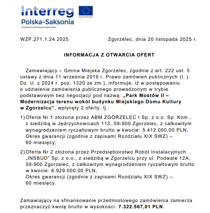 „Projekt Park Mostów II stanowi kontynuację współfinansowanego przez Unię Europejską projektu Park Mostów, który dotyczył zabytkowych kompleksów parkowych po obu stronach Nysy Łużyckiej i został zrealizowany przez miasta Zgorzelec i Gӧrlitz w latach 2016–2019. Nasze miasto przeprowadziło w jego ramach kompleksową rewitalizację Parku Błachańca. Ze względu na skalę zaplanowanych do przeprowadzenia prac projekt Park Mostów nie objął reprezentacyjnego terenu wokół Miejskiego Domu Kultury w Zgorzelcu oraz terenów w rejonie Winnego Wzgórza w Gӧrlitz. Z myślą o nich powstał projekt Park Mostów II, którego realizacja właśnie się rozpoczyna. Jest to kontynuacja i niejako dopełnienie projektu z lat 2016–2019 dotyczącego zabytkowych kompleksów zieleni w obu miastach.