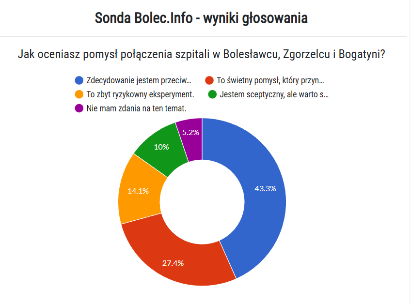 Konsolidacja dwóch szpitali powiatowych może poprawić efektywność, jakość usług i stabilność finansową, ale niesie też ryzyko pogorszenia dostępności świadczeń, konfliktów społecznych i trudności organizacyjnych. Ostatecznie to radni — w zarówno Bolesławcu, jak i Zgorzelcu — będą podejmować decyzję, a powinni być głosem swoich wyborców. Tymczasem na razie nikt nie pyta ani radnych, ani mieszkańców, a to przecież ich głosy powinny być kluczowe w tej dyskusji.