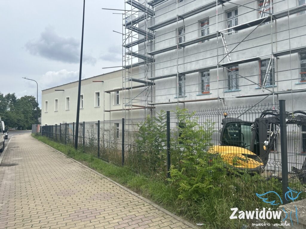 Przy ulicy Grunwaldzkiej trwa intensywna przebudowa jednego z kluczowych obiektów w mieście. Budynek przechodzi gruntowną metamorfozę, a postęp prac widać gołym okiem. Od strony ulicy Granicznej przygotowano elewację do malowania, natomiast przed obiektem trwa układanie nawierzchni z kostki betonowej.